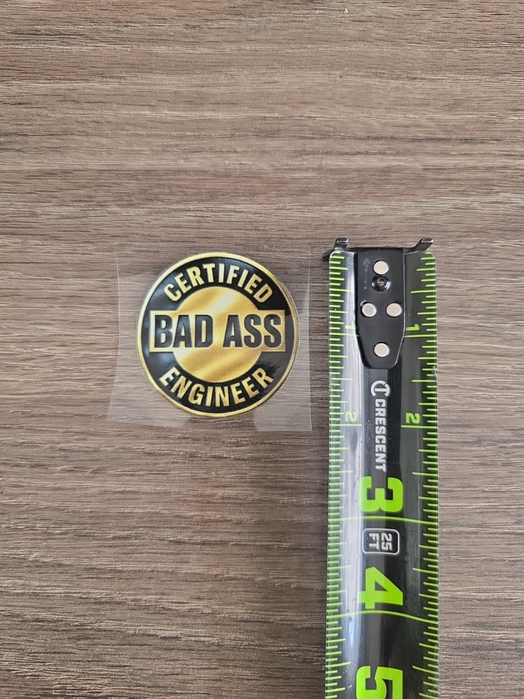 Show off your skills (and your attitude) with this “Certified Bad Ass Engineer” UV DTF decal. Featuring a slick gold-and-black design, this sticker is perfect for engineers, mechanics, operators, techs, and anyone who takes pride in being the one everyone else calls when things need fixing.