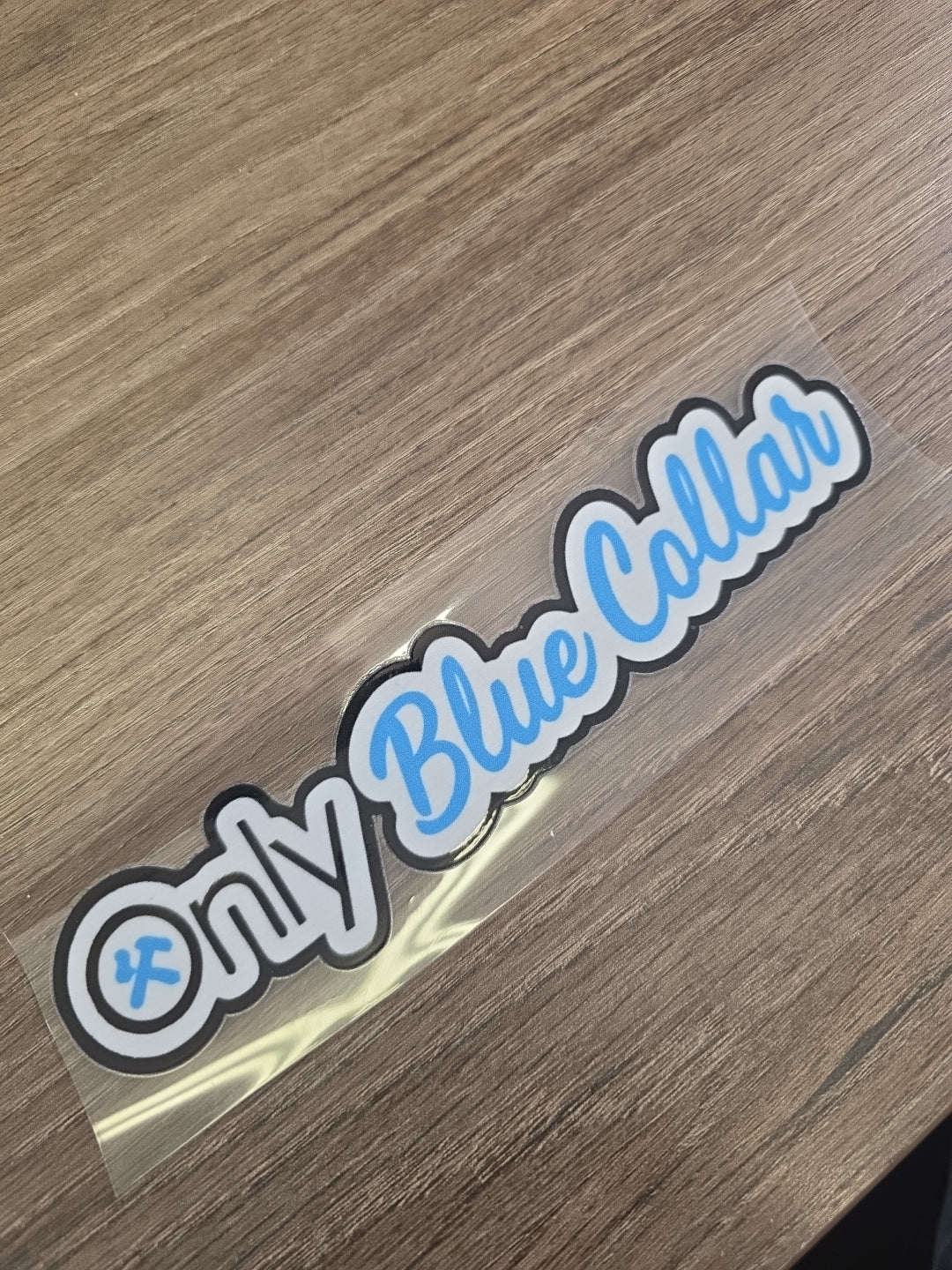 Show them where you stand with this “Only Blue Collar” UV DTF decal — a crisp, modern design made for the hard workers who keep the world running. Perfect for hard hats, toolboxes, lunchboxes, laptops, tumblers, work trucks, and more.