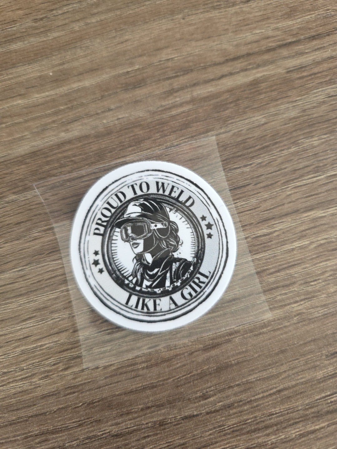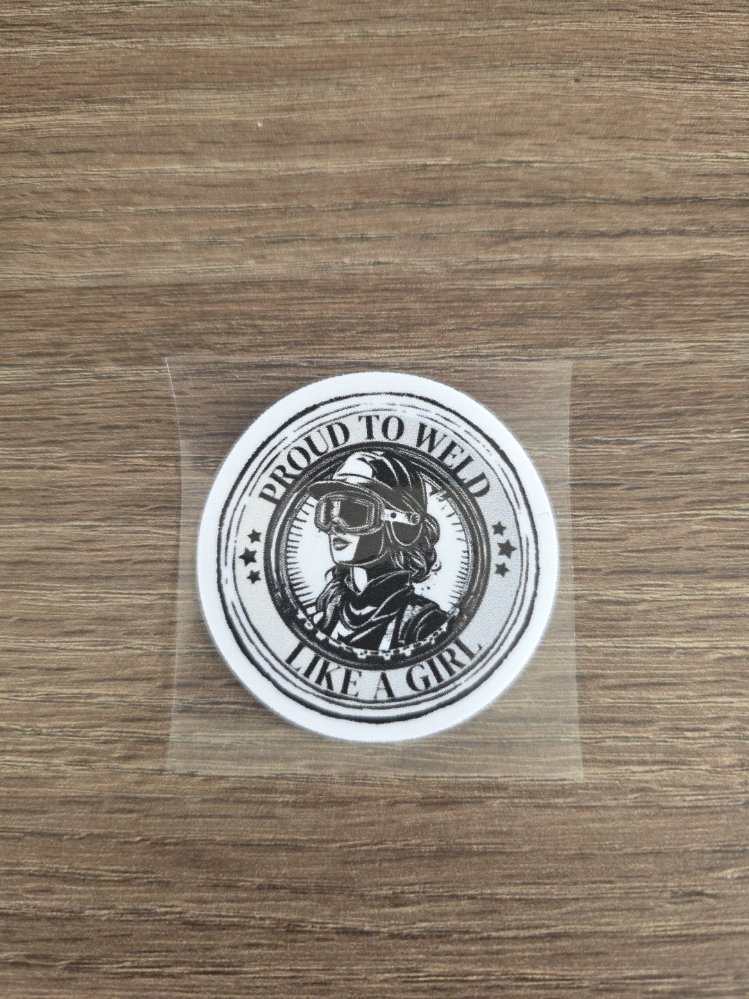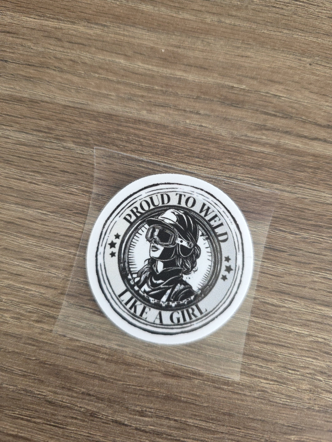 “Proud to Weld Like a Girl” (Black & White) UV DTF Decal