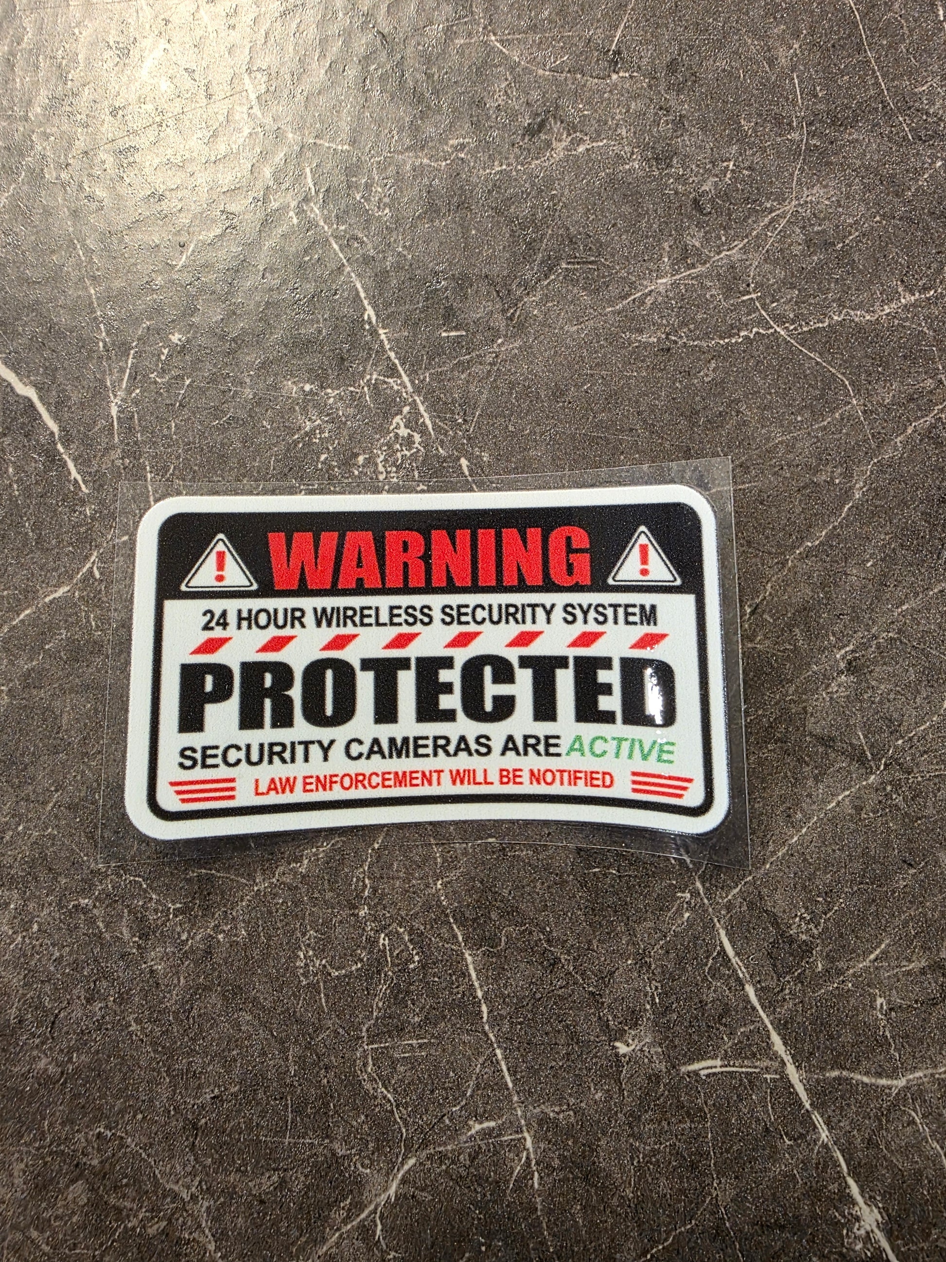 Warn potential intruders before they even reach the door with this bold Security Video Surveillance UV DTF warning decal. Perfect for homes, businesses, shops, garages, storage units, and any area where you want people to know cameras are in use.